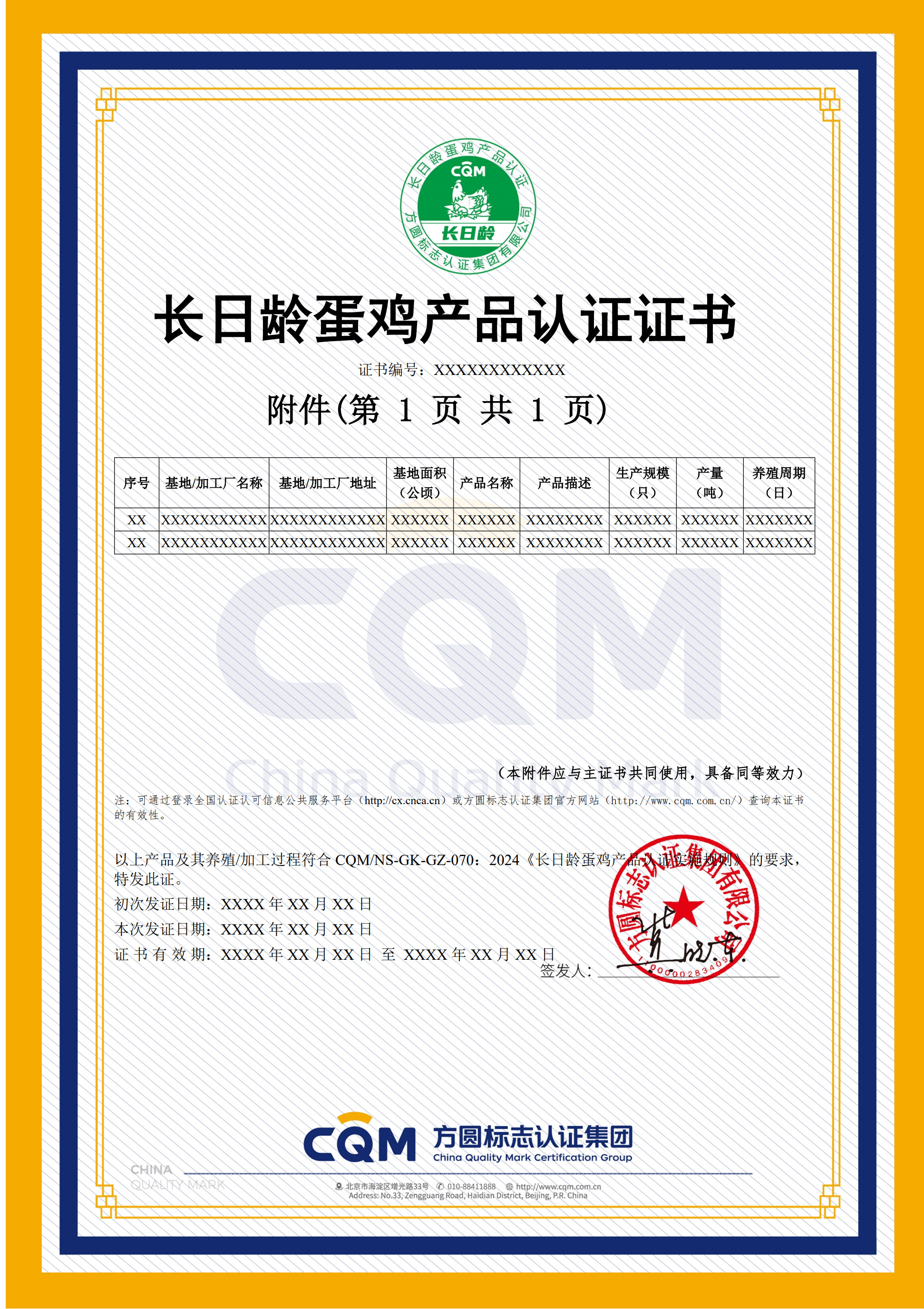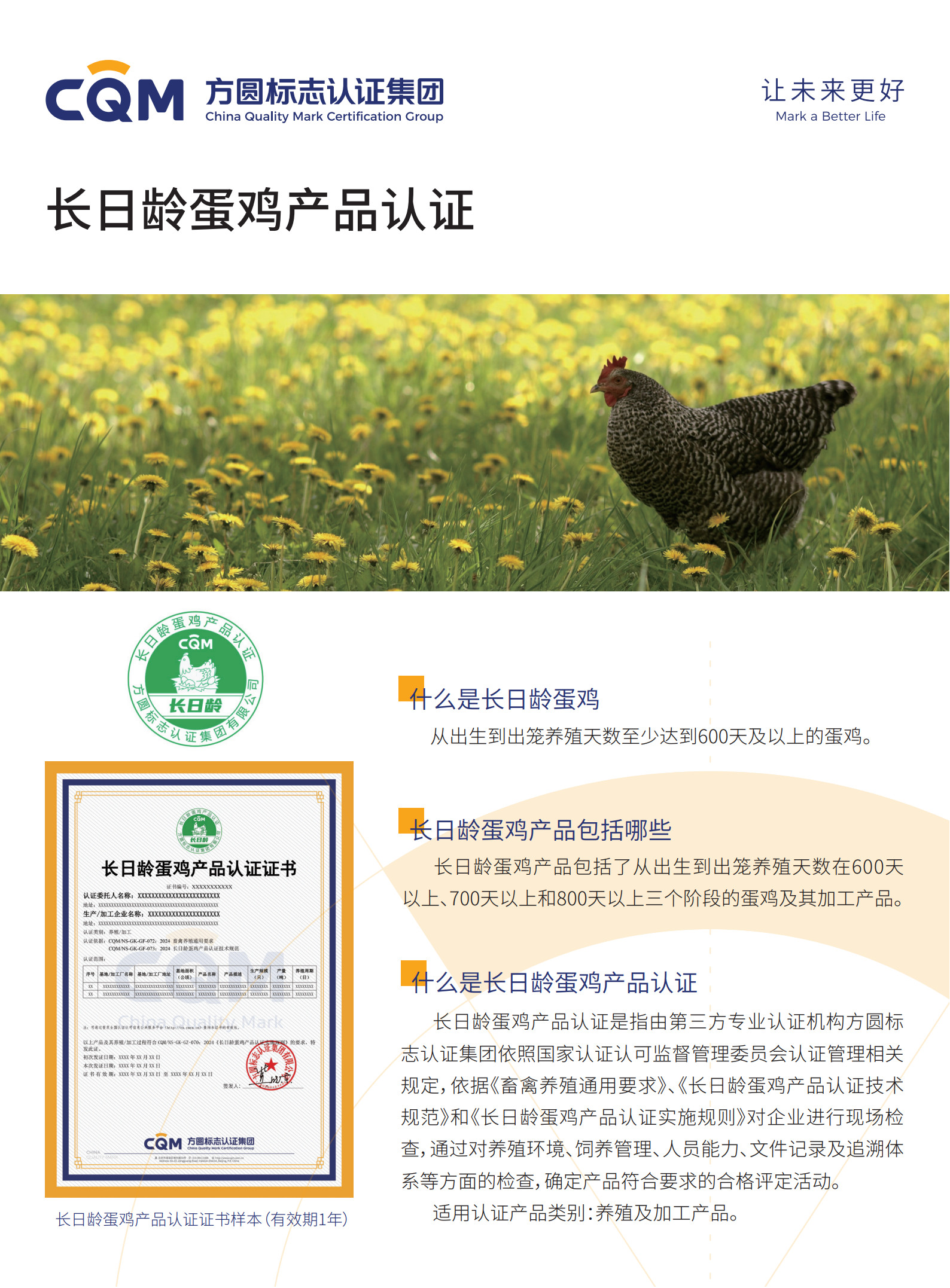 長(zhǎng)日齡蛋雞產(chǎn)品認(rèn)證