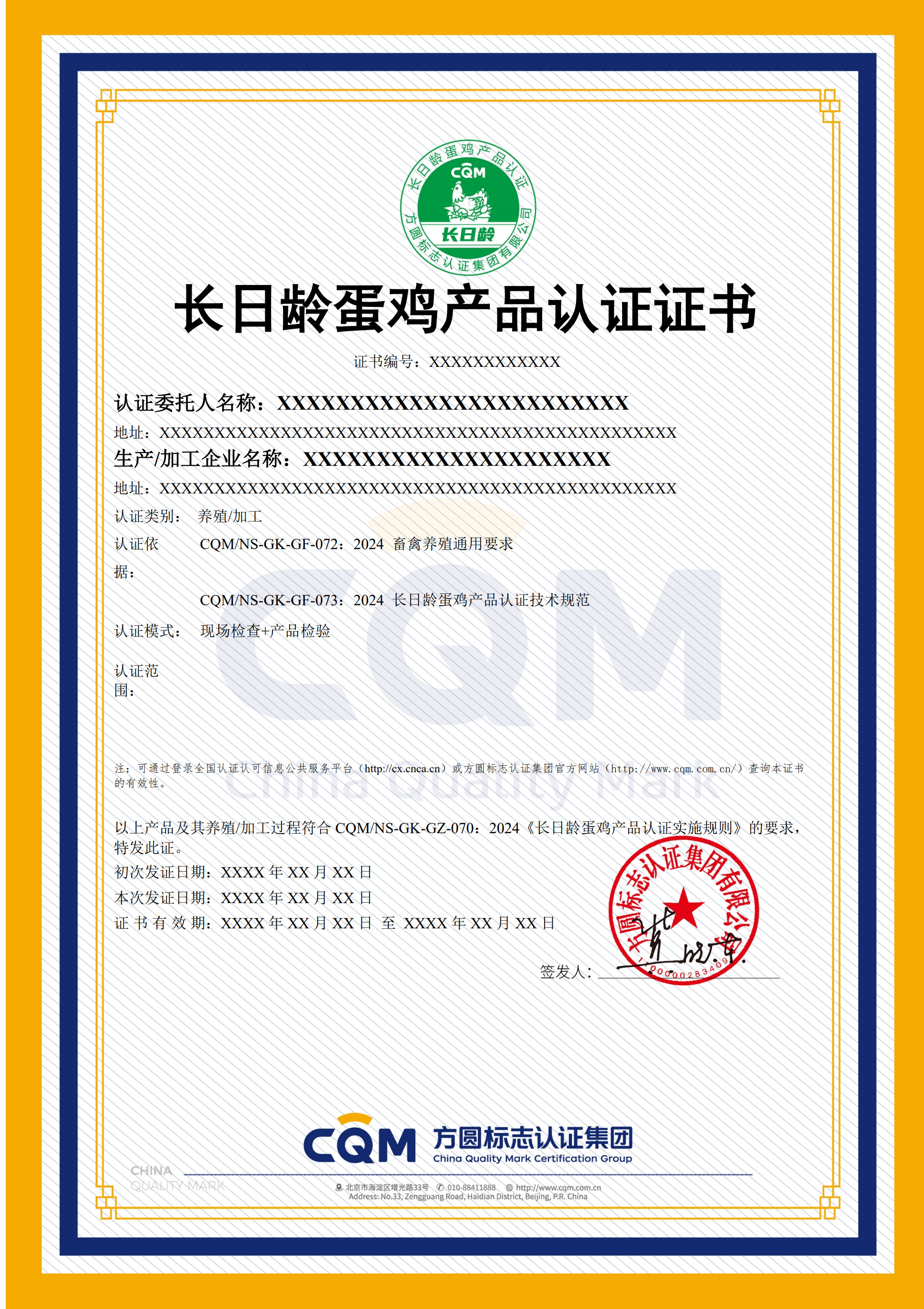 CQM/NS-GK-GZ-070:2024 長(zhǎng)日齡蛋雞產(chǎn)品認(rèn)證實(shí)施規(guī)則