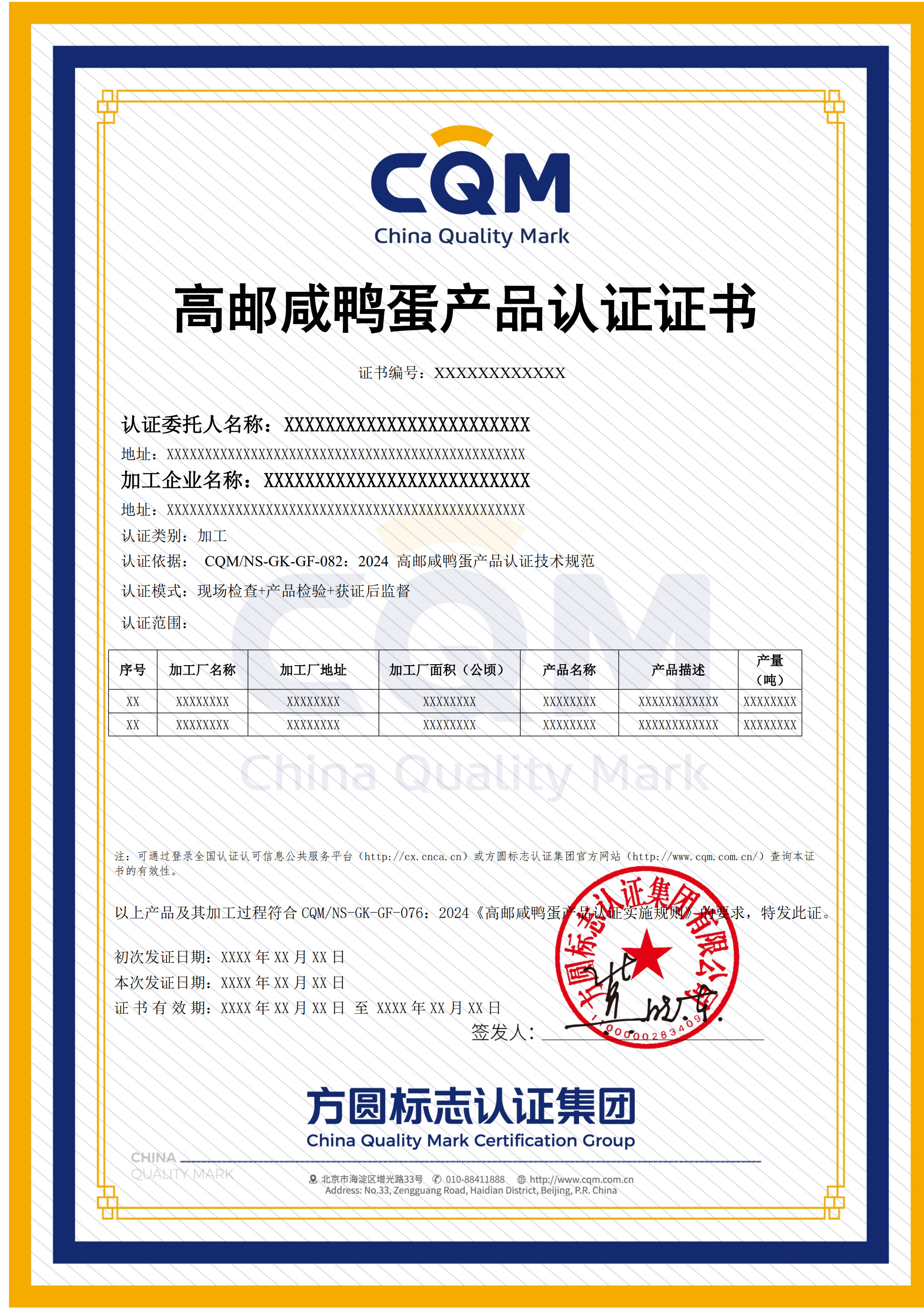 CQM/NS-GK-GZ-076:2024 高郵咸鴨蛋產品認證實施規(guī)則