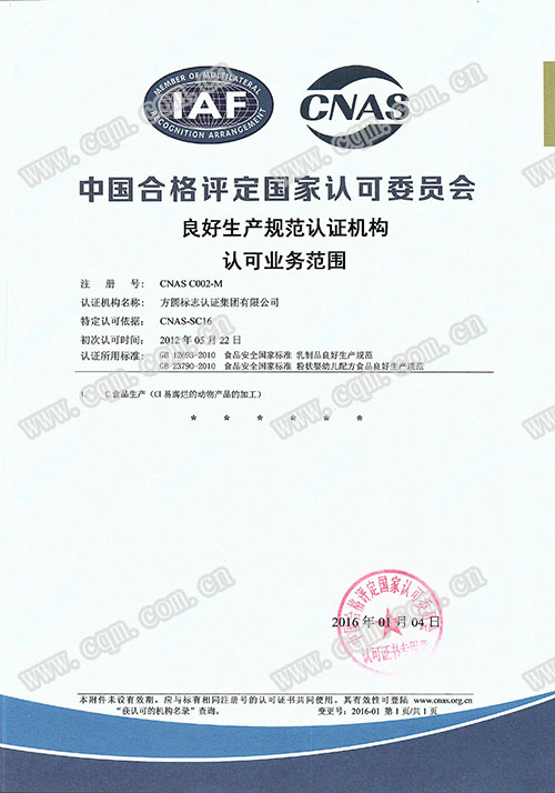 良好農(nóng)業(yè)規(guī)范GAP認(rèn)證認(rèn)可證書