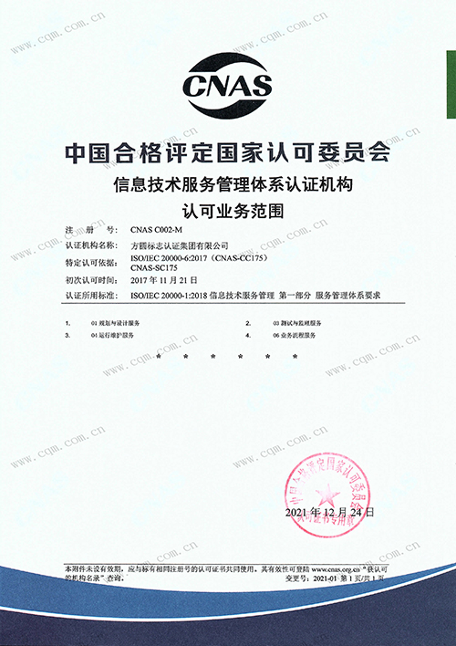 信息技術(shù)服務(wù)管理體系認(rèn)證認(rèn)可證書