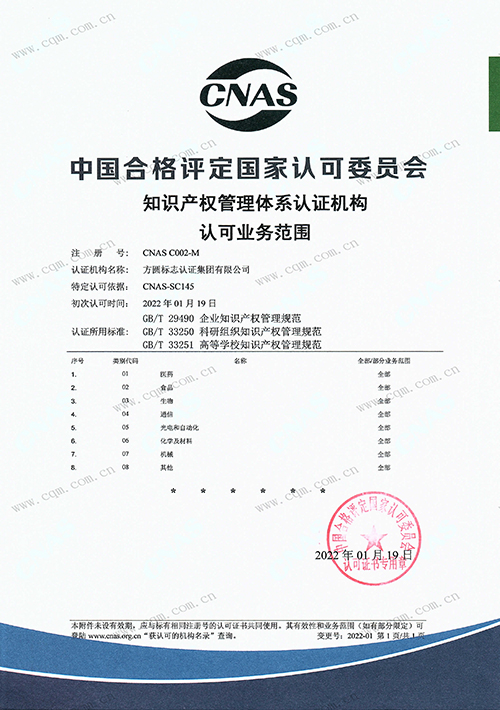知識(shí)產(chǎn)權(quán)管理體系認(rèn)可證書