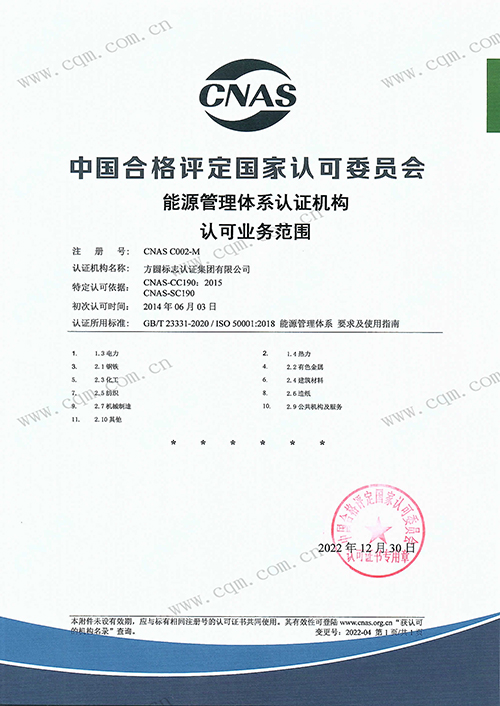 能源管理體系認(rèn)證機(jī)構(gòu)認(rèn)可證書