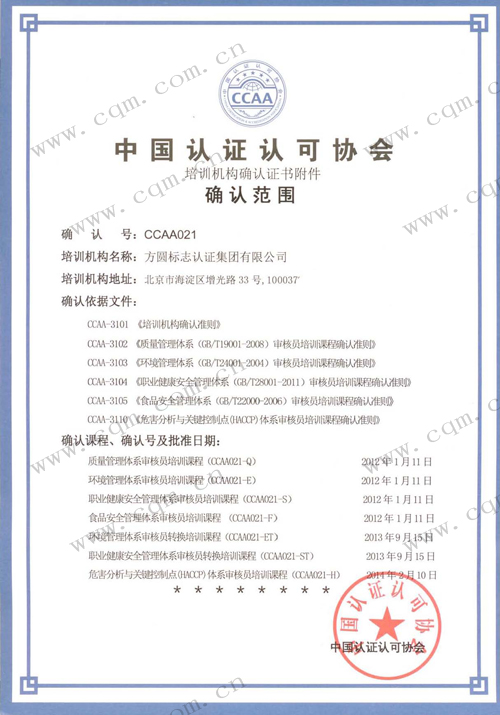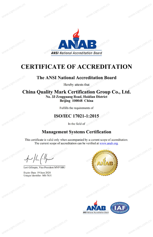 質(zhì)量管理體系認(rèn)證機(jī)構(gòu)認(rèn)可證書