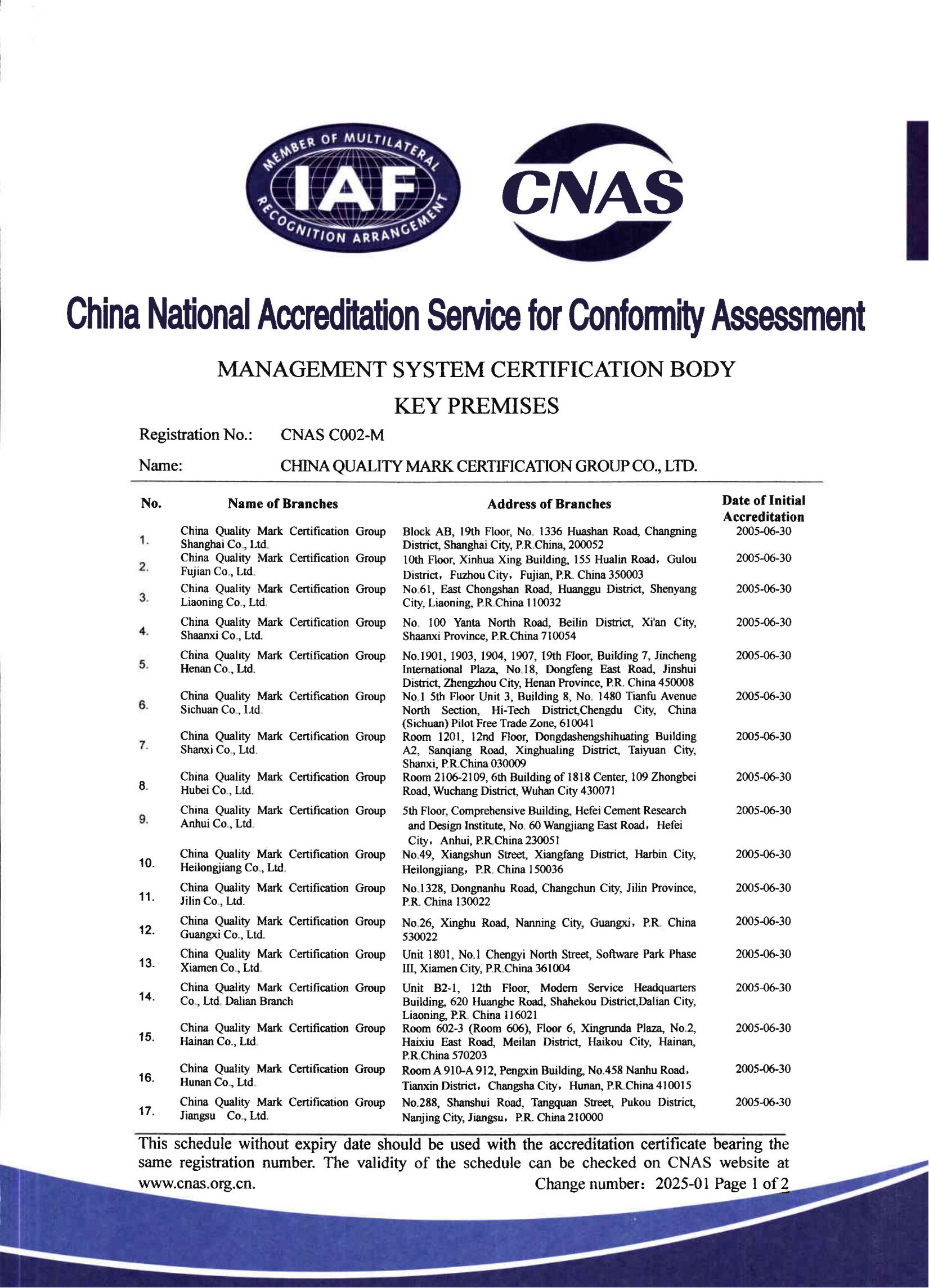 中國(guó)認(rèn)證認(rèn)可協(xié)會(huì)確認(rèn)證書