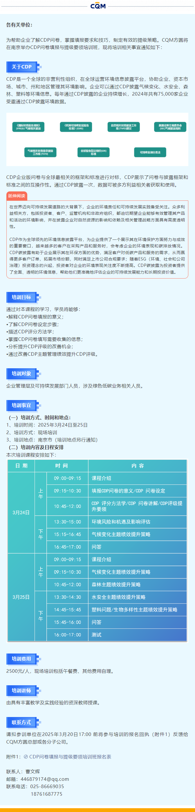 關(guān)于舉辦CDP問卷填報與提級要領(lǐng)培訓(xùn)的通知