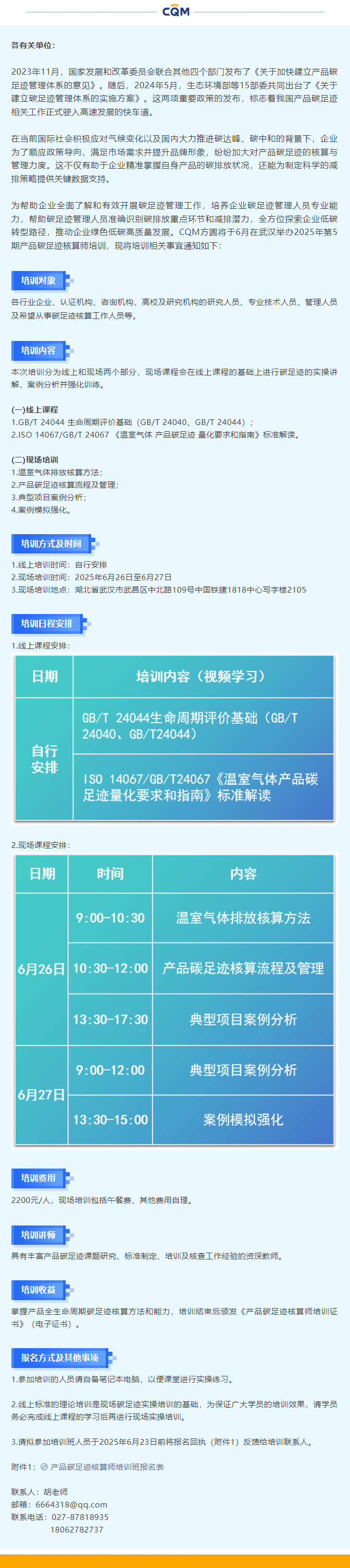 關(guān)于舉辦2025年第5期產(chǎn)品碳足跡核算師培訓(xùn)的通知