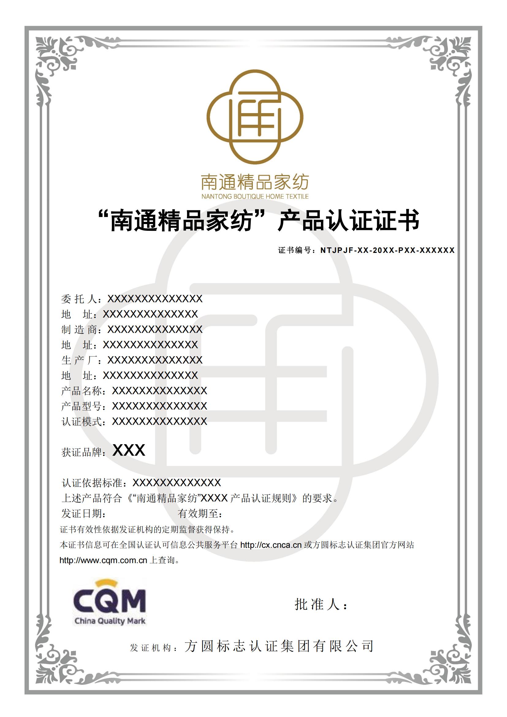 您現(xiàn)在的位置:首頁 > 產(chǎn)品認(rèn)證 > 區(qū)域品牌產(chǎn)品認(rèn)證 > 南通精品家紡