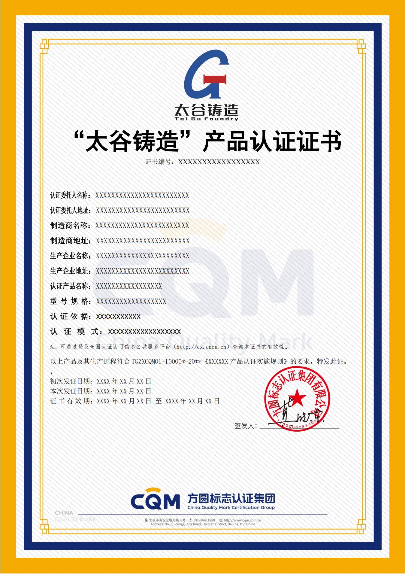 您現(xiàn)在的位置:首頁 > 產(chǎn)品認(rèn)證 > 區(qū)域品牌產(chǎn)品認(rèn)證 > 太谷鑄造
