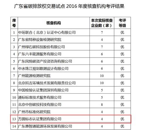 近日,為促進(jìn)廣東省碳排放權(quán)交易有序運(yùn)行,廣東省發(fā)展和改革委員會(huì)(以下簡(jiǎn)稱“廣東省發(fā)改委”)根據(jù)《廣東省碳排放管理試行辦法》(粵府令第197號(hào))、《廣東省發(fā)展改革委關(guān)于企業(yè)碳排放信息報(bào)告與核查的實(shí)施細(xì)則》(粵發(fā)改氣候【2015】80號(hào))以及《廣東省碳排放信息核查工作管理考評(píng)方案(試行)》等文件,組織對(duì)廣東省碳排放交易試點(diǎn)2016年度核查相關(guān)工作考評(píng),并于10月9日發(fā)布《關(guān)于印發(fā)廣東省碳排放權(quán)交易試點(diǎn)2016年度核查相關(guān)工作考評(píng)結(jié)果的通知》公布了考評(píng)結(jié)果,方圓標(biāo)志認(rèn)證集團(tuán)有限公司及相關(guān)核查工作順利通過(guò)了廣東省碳排放權(quán)交易試點(diǎn)單位2016年度核查考評(píng)。