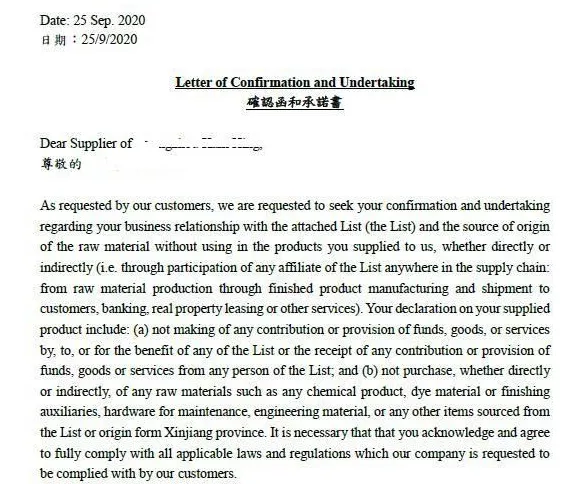 時(shí)間:2021年03月31日 近日,瑞典知名時(shí)尚快消品牌H&M在其官網(wǎng)上發(fā)布聲明,主動(dòng)禁用新疆棉花產(chǎn)品,原因是此地區(qū)持續(xù)遭受強(qiáng)迫勞動(dòng)和其他侵犯人權(quán)的指控,不符合自己堅(jiān)持的BCI標(biāo)準(zhǔn),甚至還給它的每一個(gè)供應(yīng)商都發(fā)了承諾書(shū),逼迫成員在上面簽字,承諾不使用新疆棉,否則永不合作。被逼無(wú)奈下,很多人都選擇簽字。
